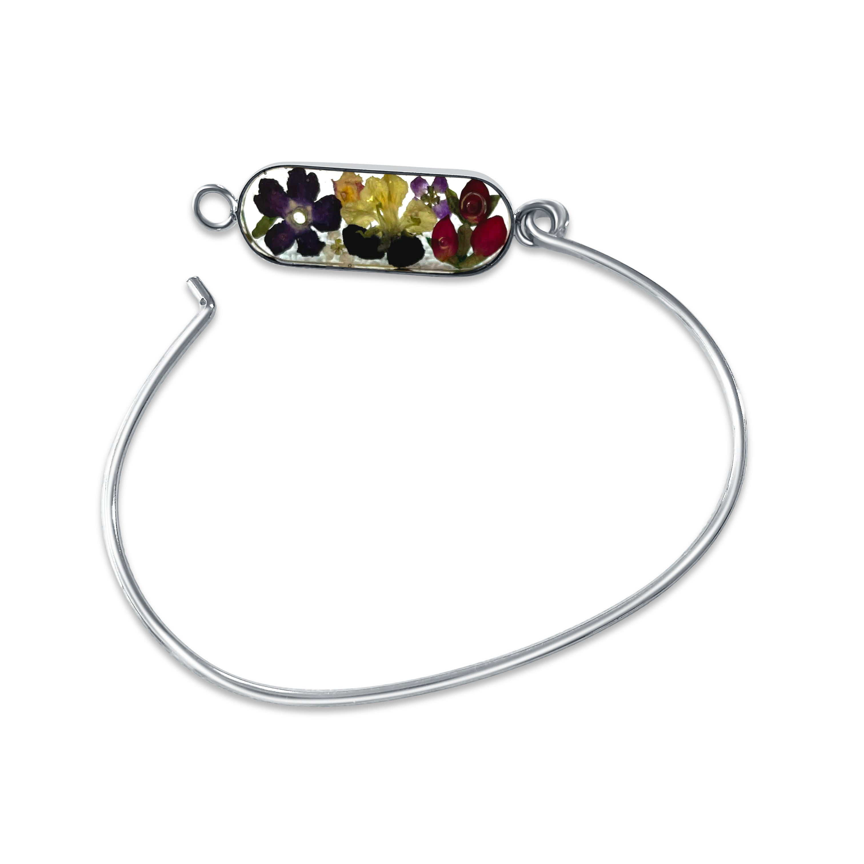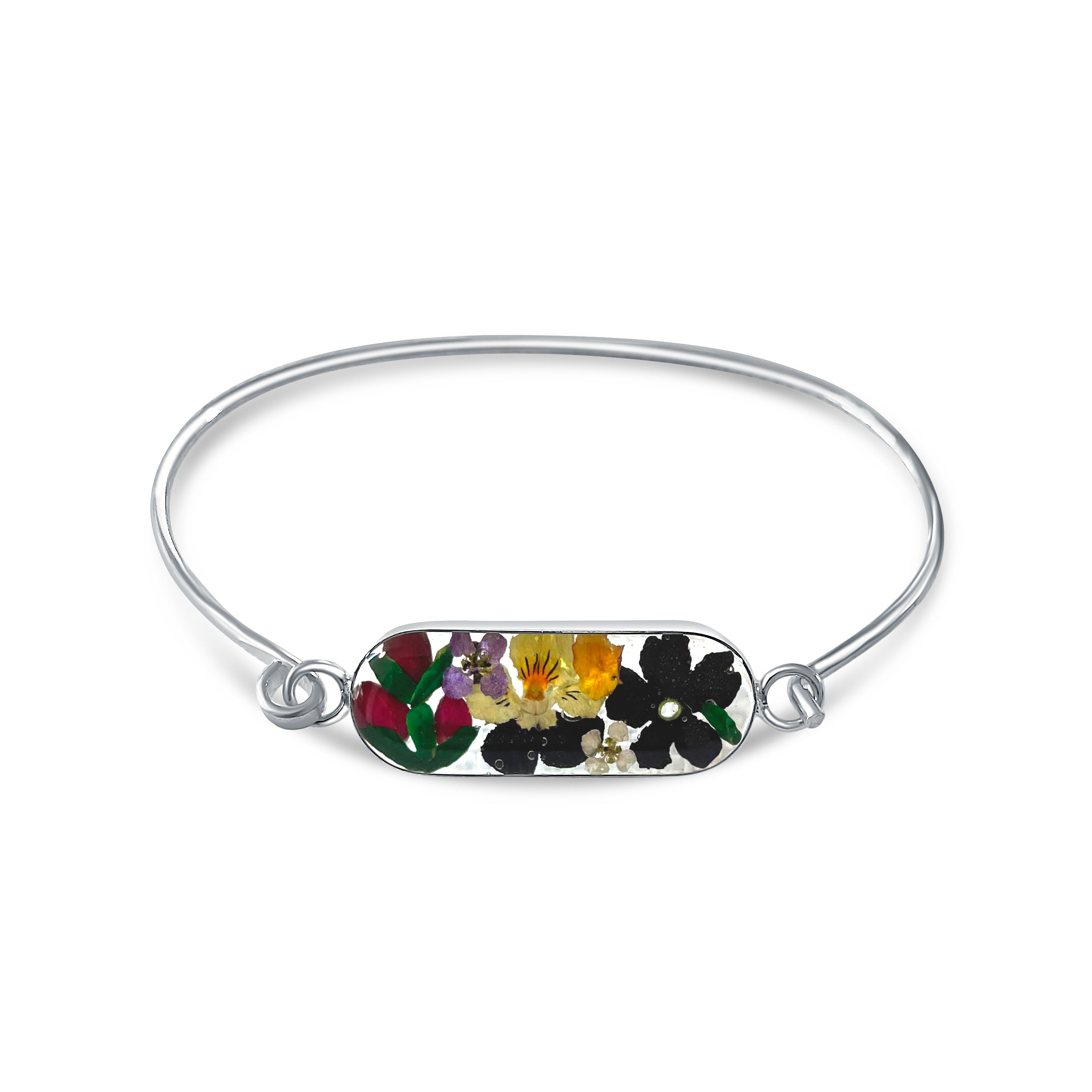 Starres Armband – 925er mexikanisches Silber – Echte Blumen