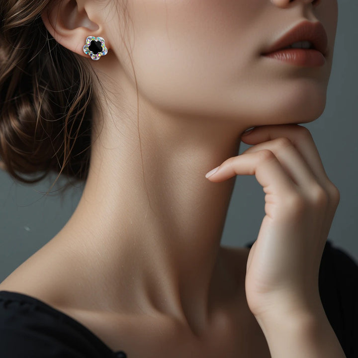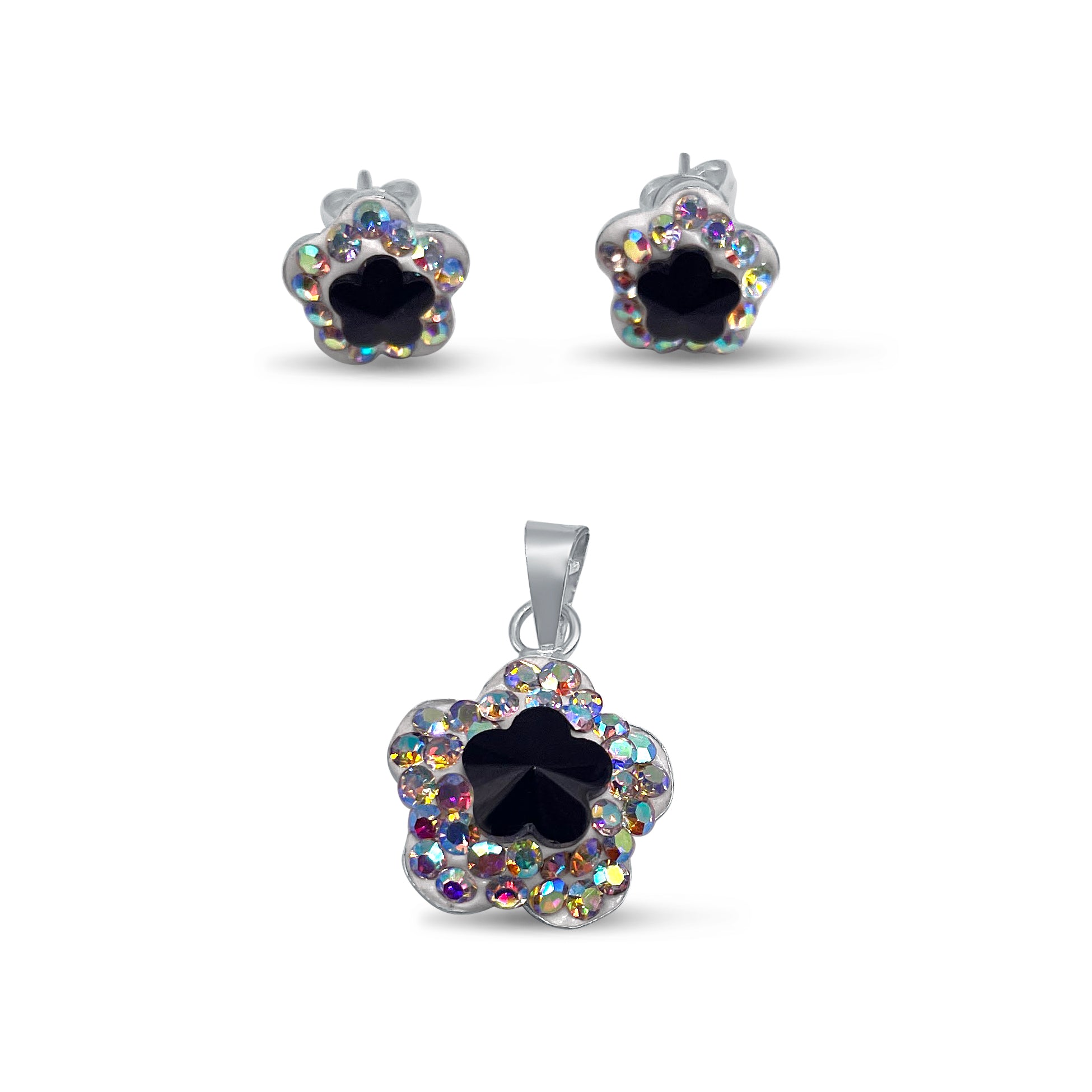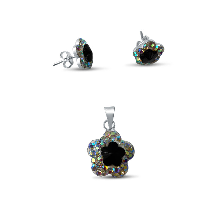 Set aus schwarzem, handgefertigtem Glitzerblumenspiel – mexikanisches 925er Silber