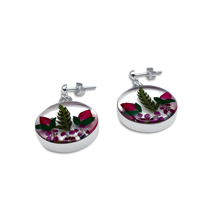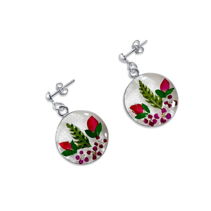 Handcrafted Round Earrings | 925 Mexican Silver | Real Flowers