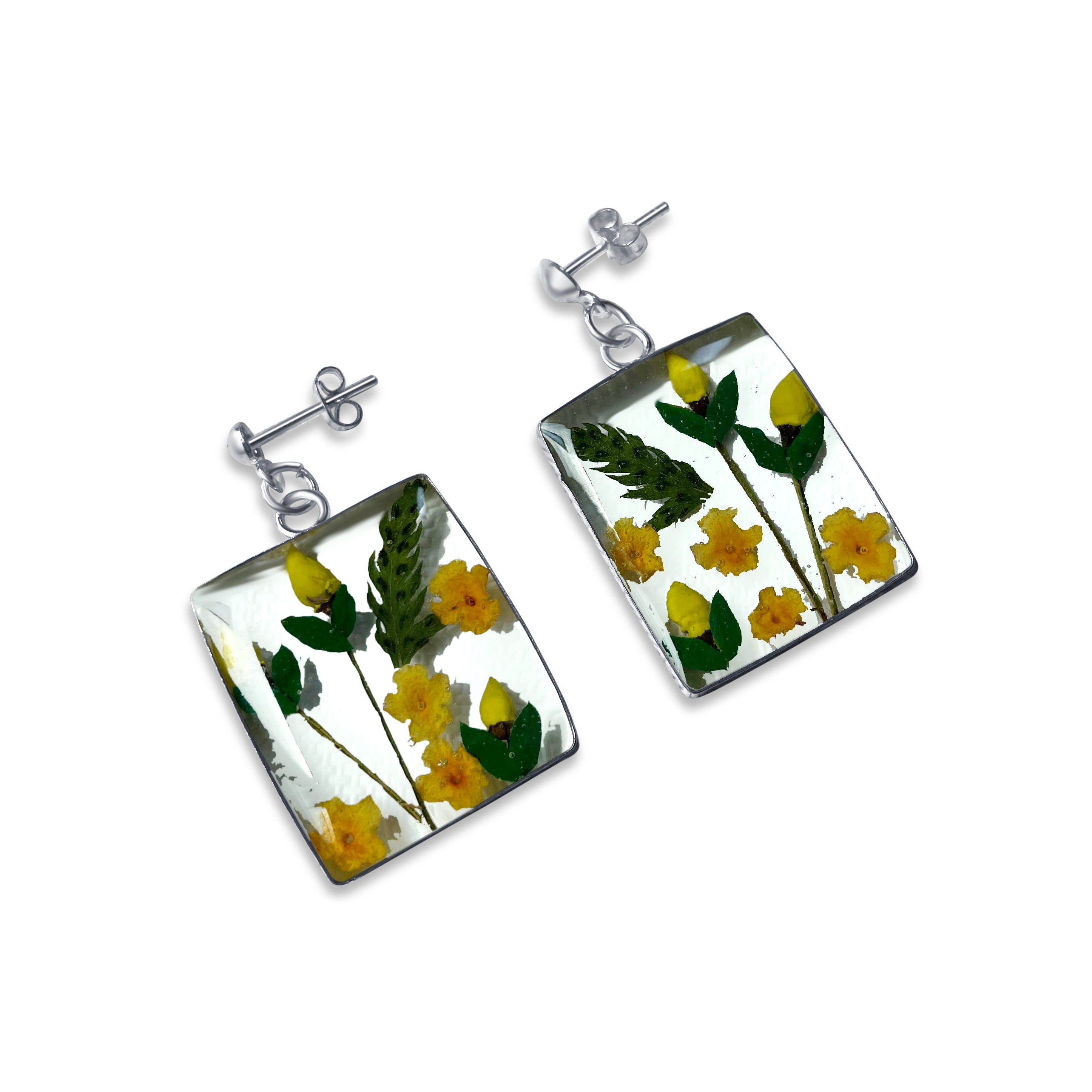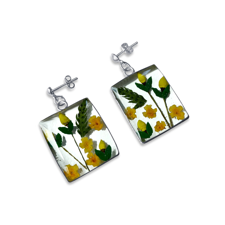 Pendientes Rectangulares Artesanales | Plata Mexicana 925 | Flores Reales