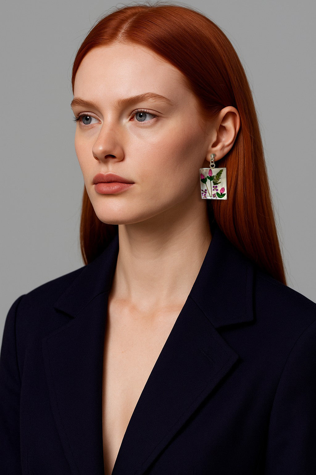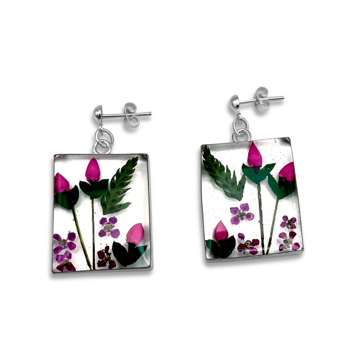 Pendientes Rectangulares Artesanales | Plata Mexicana 925 | Flores Reales